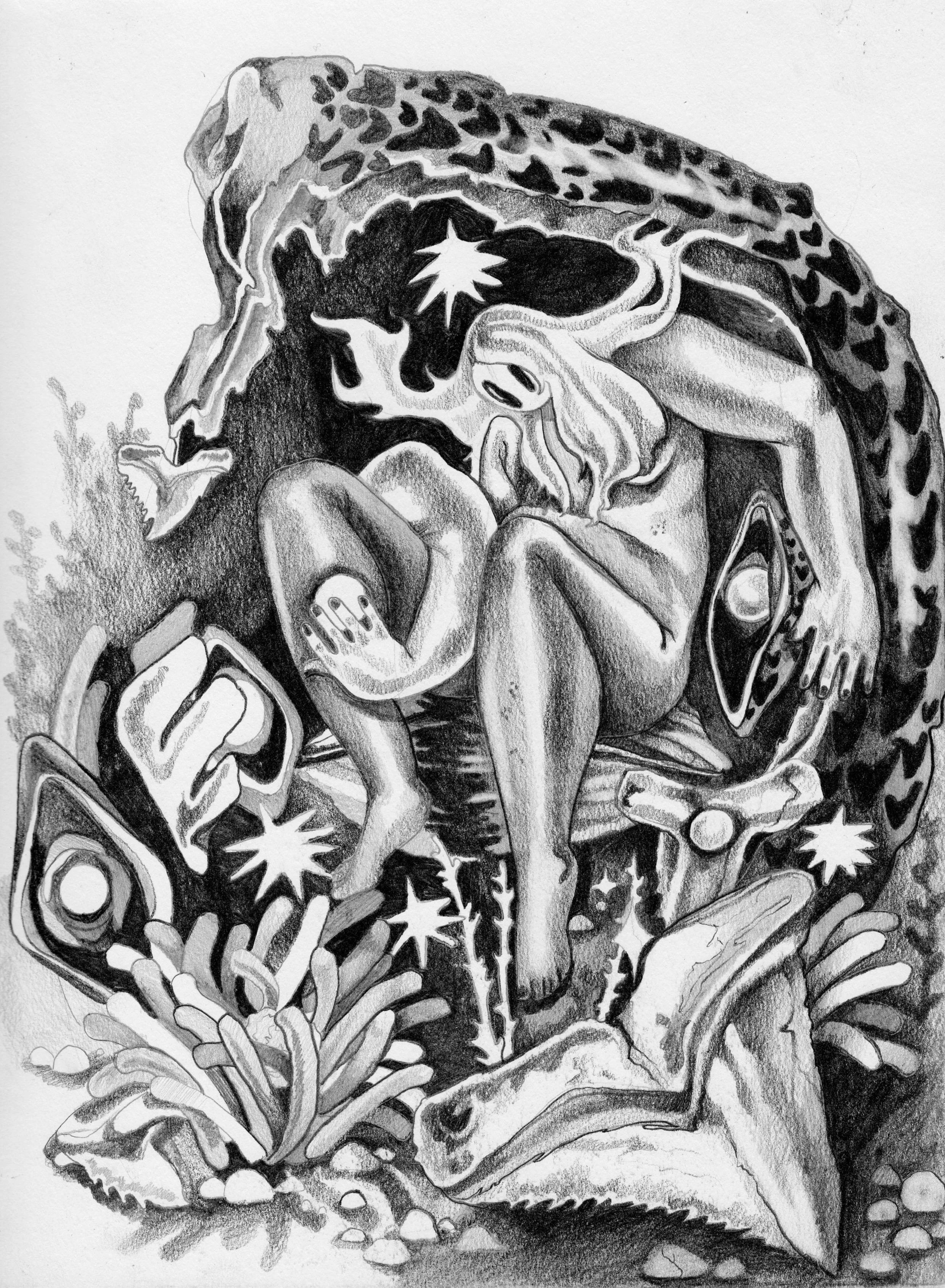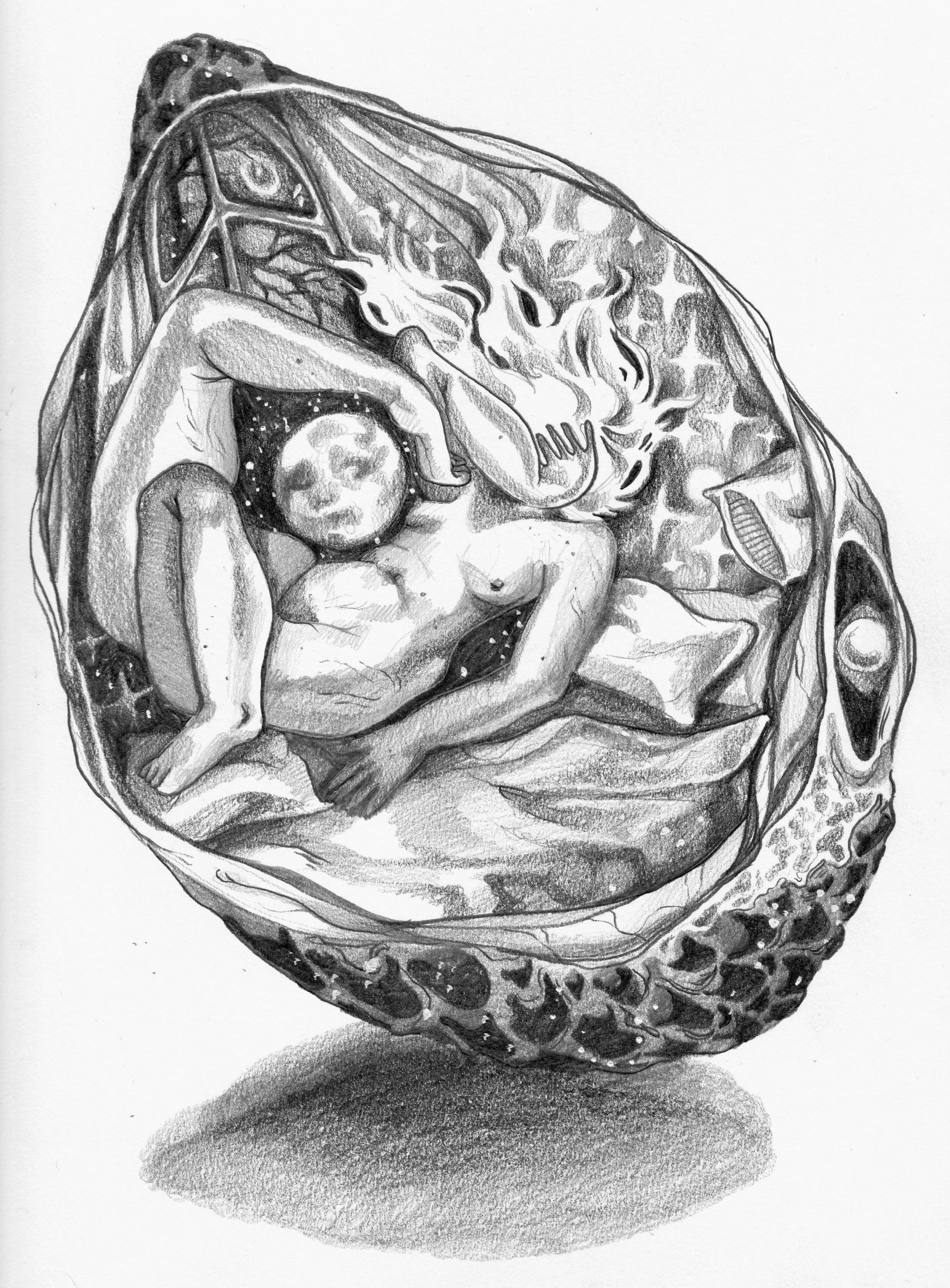 Dreaming Under The Cold Moon, 2022, graphite on paper, 12 x 9 in.