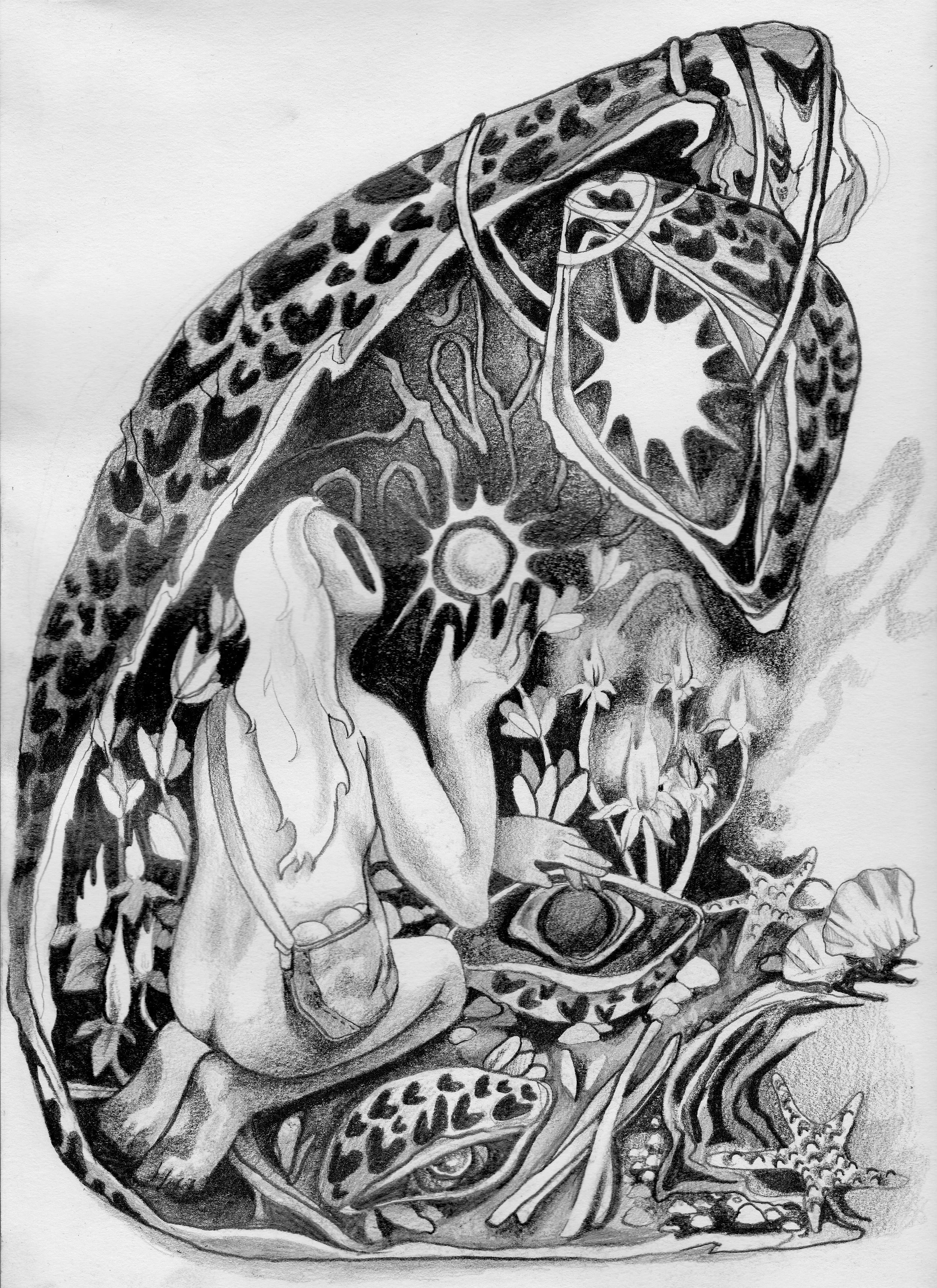 The Healer, 2022, graphite on paper, 12 x 9 in.