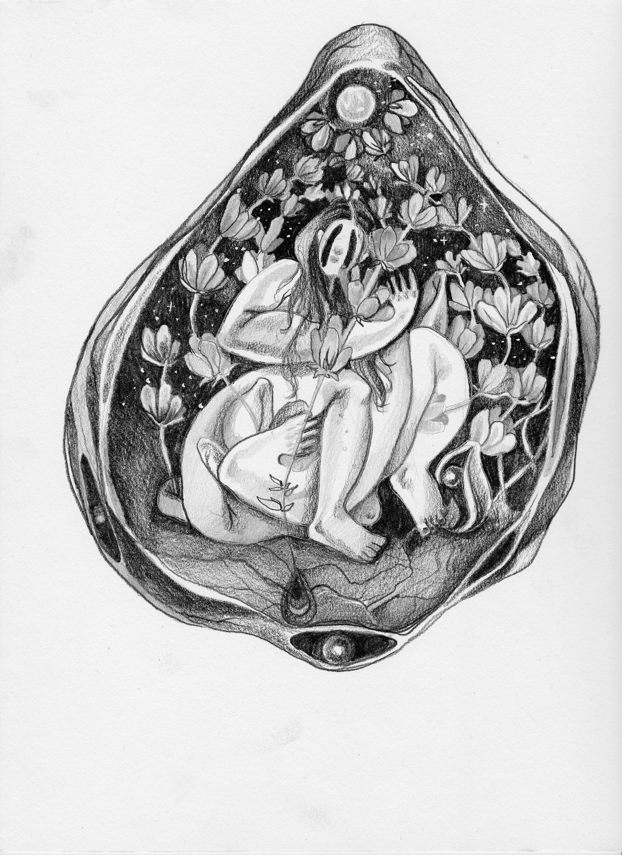 The Protector, 2022, graphite on paper, 12 x 9 in.