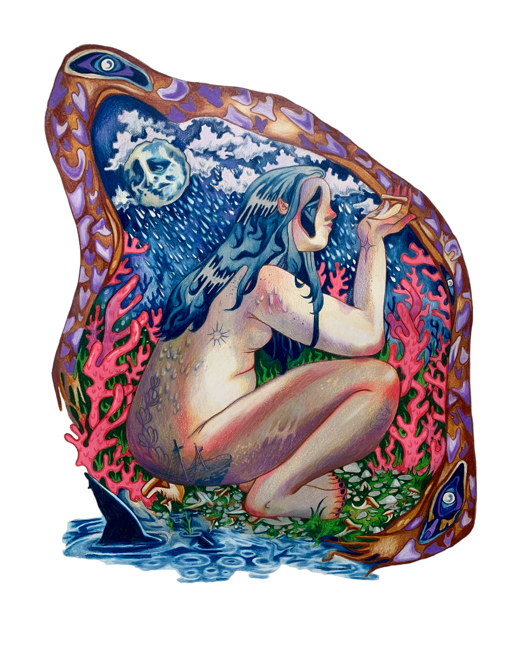 What Welcomes You, 2023, watercolor pencil on paper, 24 x 18 in.
